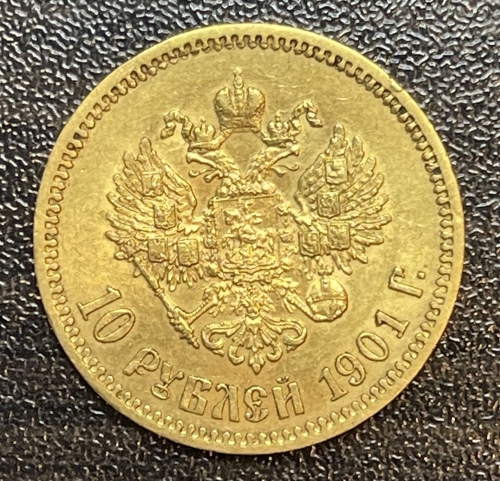 Золотая монета 10 рублей Николай II 1901г.,ФЗ