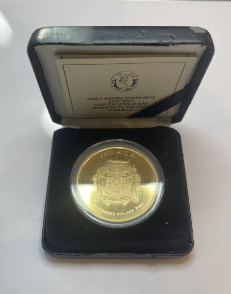 • Золотая монета 100 долларов "Призеры Олимпийских Игр" 2012г., 31,03г.,Au 916, ТИРАЖ 300 шт. Страна эмитент Ямайка, чеканились на монетном дворе Канады !