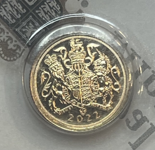 Золотая монета 1/4 соверена 2022г., 2г., Au 917