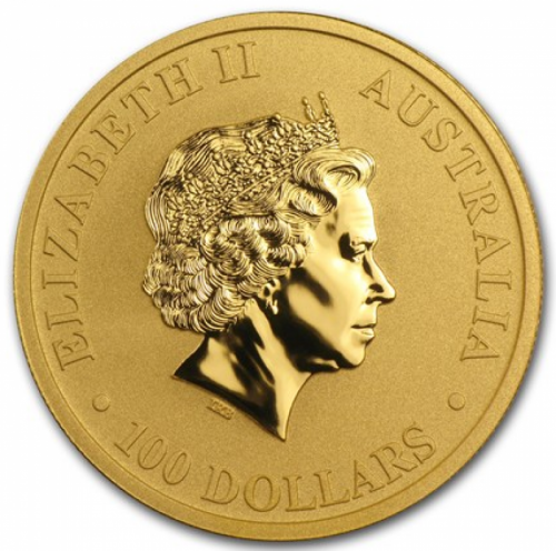 Золотая монета Австралии Лунар I "Год Кролика" весом в 1 унцию.